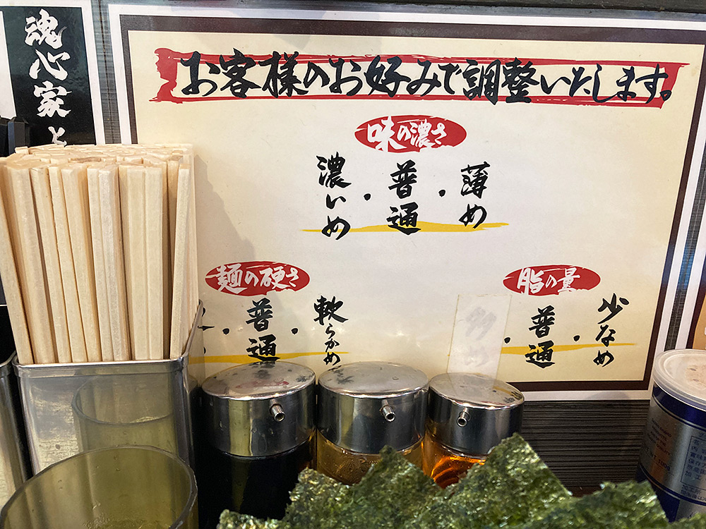 麺の硬さ・味・脂の調整も可能です。